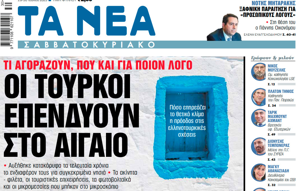 Media Στα «Νέα Σαββατοκύριακο»: Μία ευκαιρία, μία παγίδα και οι χάρτεςΕξελίξεις στο Αιγαίο • Εναν νέο δρόμο στον ελληνοτουρκικό διάλογο σηματοδοτεί η πληροφορία ότι η Αγκυρα αποδέχεται να ανοίξει η συζήτηση για οριοθέτηση θαλάσσιων ζωνών με βάση το Δίκαιο της Θάλασσας 05/10/2024 02:46