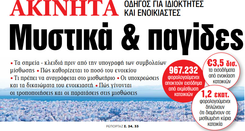 Media Στα «ΝΕΑ» της Πέμπτης: Διπλή εμπλοκήΕξ αδιαιρέτου ακίνητα – Τι διαπιστώνουν χιλιάδες ιδιοκτήτες 09/11/2023 03:03
