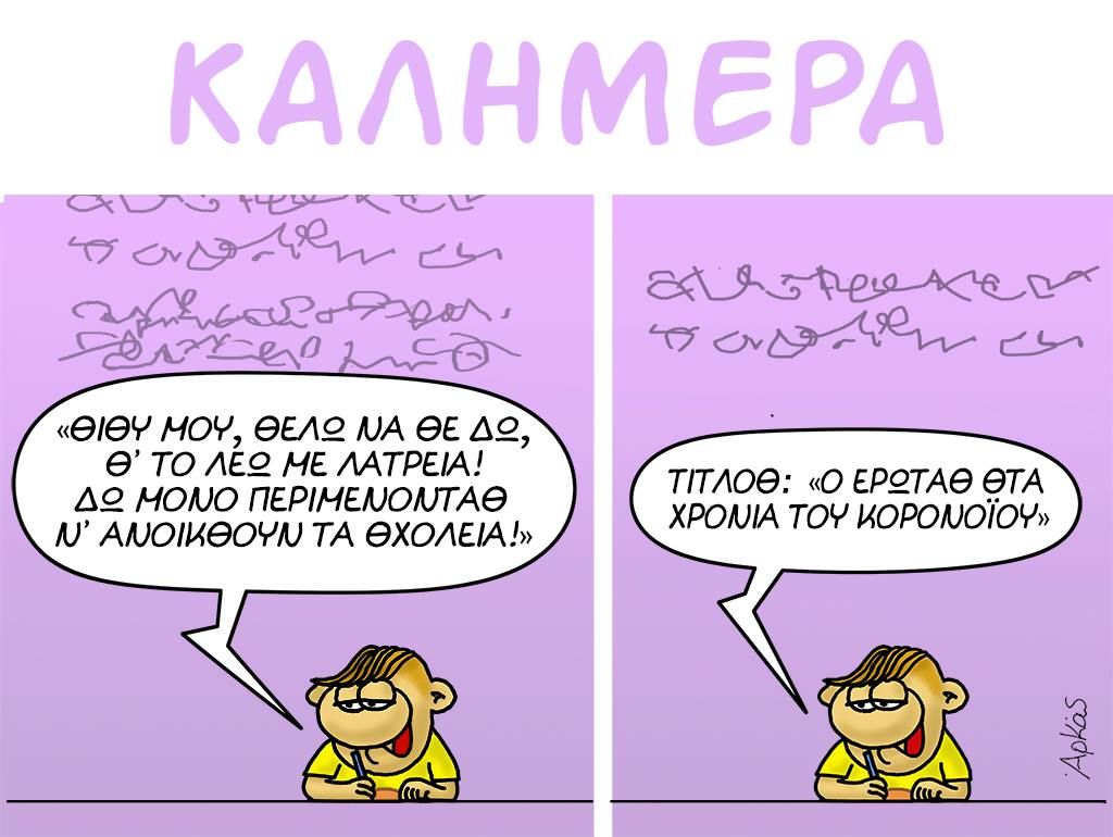 Ελλάδα Αρκάς: Η «πληρωμένη» απάντηση του Ζαχαρία στον ΓεράσιμοΠερί ζωής και εμπειριών η σημερινή καλημέρα του ταλαντούχου σκιτσογράφου 23/05/2022 08:25