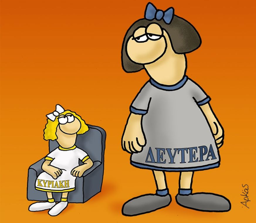 Ελλάδα Αρκάς: Με… τεμπέλικη διάθεση η «καλημέρα» του σκιτσογράφου«Πρωταγωνίστριες» οι ημέρες της εβδομάδας 04/02/2022 08:31