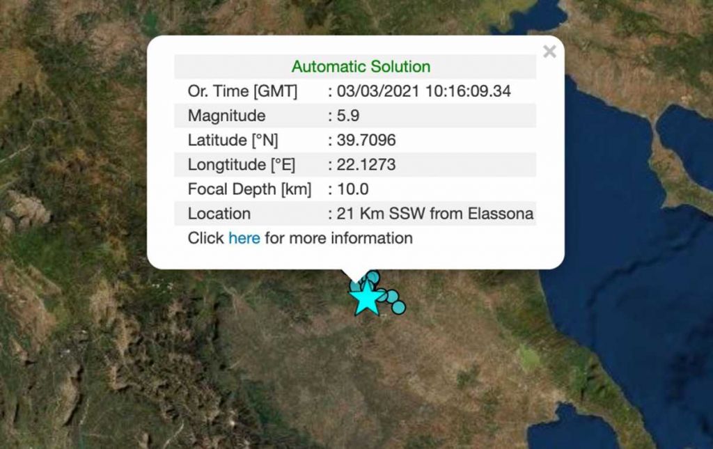 Ελλάδα Τρίτη μέρα ανησυχίας στη Θεσσαλία : Τι λένε οι σεισμολόγοι για τα 5,9 Ρίχτερ και την ενεργοποίηση νέου ρήγματοςΓια δεύτερη νύχτα οι κάτοικοι έμειναν στον δρόμο μετά τον νέο σεισμό των 5,9 Ρίχτερ 05/03/2021 09:24