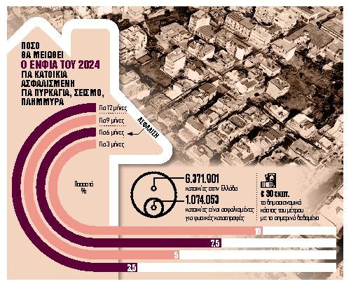 Οικονομία Ποιοι θα πληρώσουν λιγότερο ΕΝΦΙΑΟι προϋποθέσεις που ξεκλειδώνουν έκπτωση 20% στις ασφαλισμένες κατοικίες για φυσικές καταστροφές - Ποιοι θα πληρώσουν λιγότερο και ποιοι περισσότερο Βουργάνα Μαρία 10/12/2024 08:22