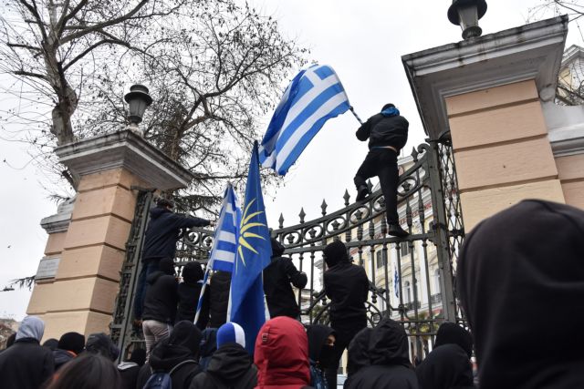 Ελλάδα Θεσσαλονίκη: Μαθητές ξήλωσαν σκοπιανές πινακίδες από ΙΧΜαθητές συγκεντρώθηκαν αρχικά στον Λευκό Πύργο και, κρατώντας σημαίες και πανό, κατευθύνθηκαν στο υπουργείο Μακεδονίας-Θράκης, όπου φώναξαν συνθήματα κατά τη Συμφωνίας των Πρεσπών και υπέρ της ελληνικότητας της Μακεδονίας 31/01/2019 15:08
