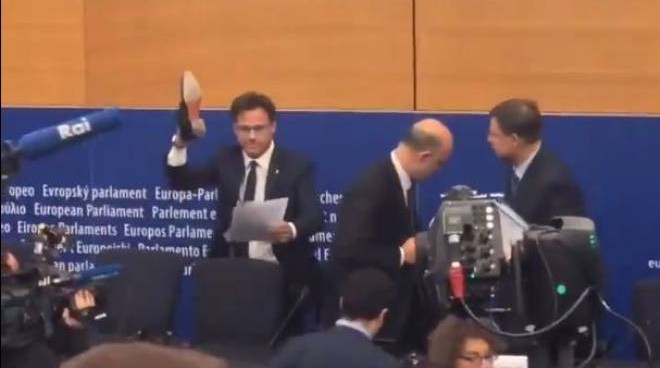 Κόσμος Επίθεση Μοσκοβισί στη Λέγκα: «Φασίστας» ο ΤσιόκαΟ Τσιόκα ανέβηκε στο βήμα μετά τις δηλώσεις Μοσκοβισί και πήρε τις σημειώσεις του Επιτρόπου από το τραπέζι. Κατόπιν σήκωσε ένα παπούτσι, με το οποίο άρχισε να χτυπάει τα φύλλα, αφήνοντας στην κυριολεξία άφωνο τον Γάλλο Επίτροπο. 26/10/2018 14:02