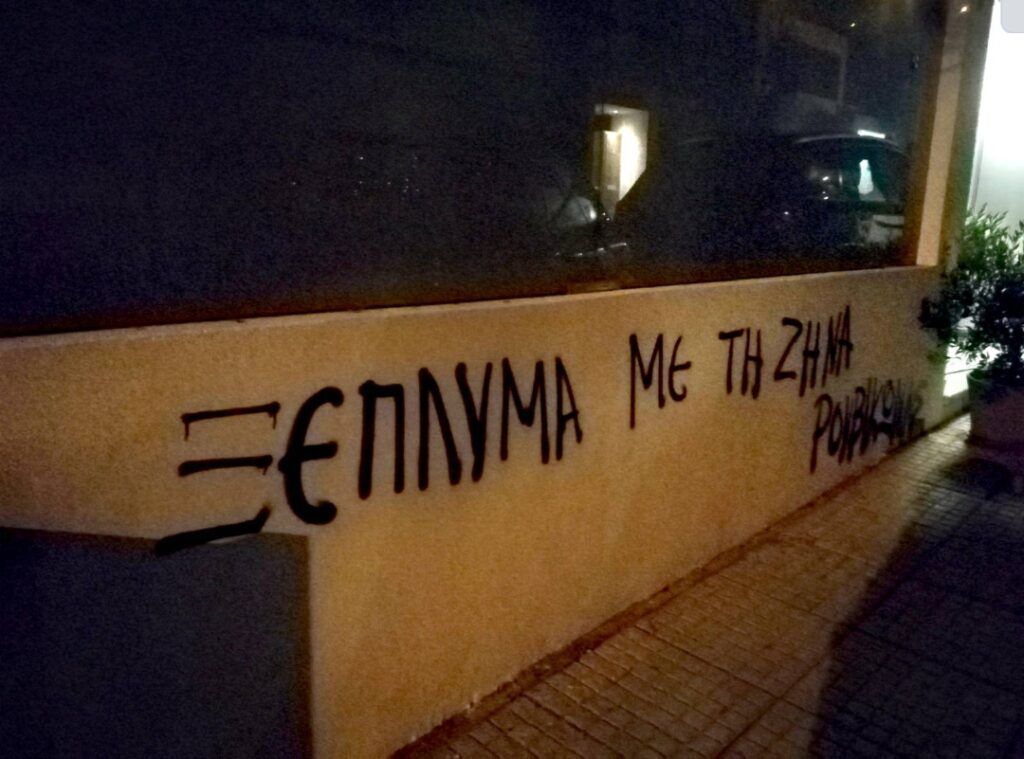 Ελλάδα Παρέμβαση Ρουβίκωνα στο σπίτι της Κουτσελίνη – «Ξέπλυμα βιαστών με τη Ζήνα»Συνθήματα στους τοίχους του σπιτιού της Ζήνας Κουτσελίνη έγραψε ο φεμινιστικός τομέας του Ρουβίκωνα, κατηγορώντας τη για «ξέπλυμα βιαστών» μέσα από τις εκπομπές της, εστιάζοντας στην υπόθεση βιασμού και σωματεμπορίας στην Ηλιούπολη 14/01/2023 23:33
