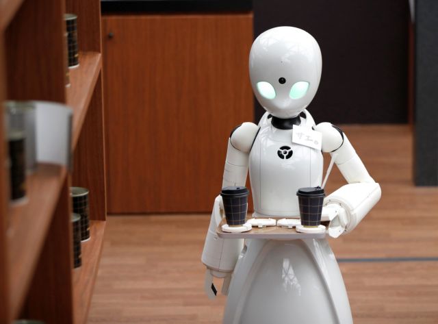 Επιστήμη & Τεχνολογία Στο Τόκιο η πρώτη καφετέρια με σερβιτόρους-ρομπότ (video+εικόνες)Συνολικά δέκα άνθρωποι με παράλυση ελέγχουν την κίνηση των ρομποτικών σερβιτόρων στο καφέ Dawn Ver και κερδίζουν γι' αυτήν την απασχόλησή τους 1.000 γεν την ώρα (περίπου οκτώ ευρώ), δηλαδή όσο είναι το τυπικό ωρομίσθιο ενός Ιάπωνα σερβιτόρου. 06/12/2018 16:26