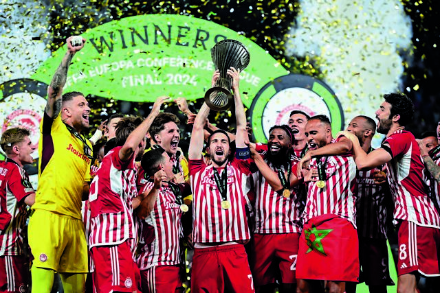 Ομάδα Έξι μήνες από την ημέρα που ο Ολυμπιακός κατέκτησε το Conference League29/5/2024 – 29/11/2024: Έξι μήνες από τη μέρα που ο Ολυμπιακός έγινε η πρώτη ελληνική ομάδα που κατακτά ευρωπαϊκό τρόπαιο, πανηγυρίζοντας την κατάκτηση του Conference League. 29/11/2024 11:50
