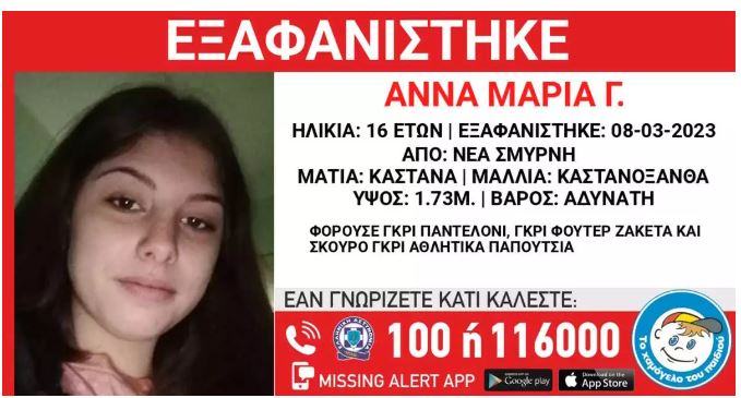 Ελλάδα Εξαφάνιση 16χρονης από δομή προστασίας στη Νέα Σμύρνη - Πώς συνδέεται με την 14χρονηΗ 16χρονη έχει εξαφανιστεί από τις 8 Μαρτίου και σήμερα το Χαμόγελο του Παιδιού έδωσε στη δημοσιότητα τα στοιχεία της. 22/03/2023 15:31