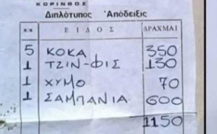 Ελλάδα Αλλες εποχές: Τι αγοράζαμε το 1978 με 1.150 δραχμέςΠριν, λοιπόν από 44 χρόνια, 3,50 ευρώ ήταν αρκετά για να διασκεδάσει μια ολόκληρη παρέα και μάλιστα σε νυχτερινό κέντρο. 13/10/2022 12:07
