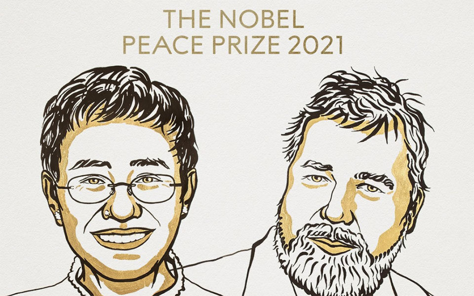 Κόσμος Σε δύο δημοσιογράφους το Νόμπελ Ειρήνης 2021 - Για τη θαρραλέα μάχη τους υπέρ της ελευθερίας της έκφρασηςΣε δύο δημοσιογράφους απονεμήθηκε το Νόμπελ Ειρήνης για το 2021 08/10/2021 12:07