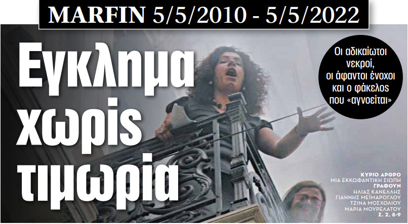 Media Στα «ΝΕΑ» της Πέμπτης: Εγκλημα χωρίς τιμωρίαMarfin 5/5/2010 – 5/5/2022 • Οι αδικαίωτοι νεκροί, οι άφαντοι ένοχοι και ο φάκελος που «αγνοείται» 05/05/2022 01:59