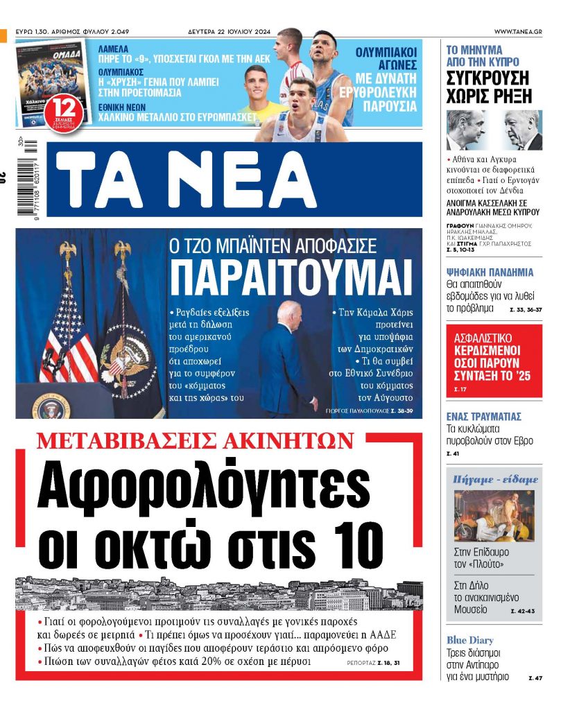 Media Στα «ΝΕΑ» της Τετάρτης: Νάρκες στα ακίνηταΜεταβιβάσεις – Ποιες είναι οι βασικές παγίδες και ποιες οι λύσεις που προτείνονται 03/07/2024 01:30