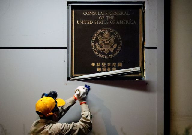 Κόσμος «Στο κόκκινο» οι σχέσεις ΗΠΑ – Κίνας: Κατέβηκε η αμερικανική σημαία στο προξενείο της ΤσενγκντούΗ αμερικανική σημαία υπεστάλη σήμερα το πρωί από τον ιστό στο κτίριο όπου έδρευε μέχρι τώρα το προξενείο των ΗΠΑ στην Τσενγκντού, τρεις ημέρες αφότου διατάχθηκε το κλείσιμό του από την κυβέρνηση της Κίνας. 27/07/2020 08:51